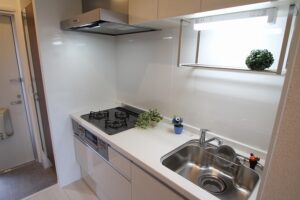 キッチンも3口のビルトインコンロ&システムキッチンで、