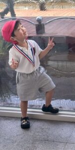 運動会が終わりメダルをもらって大満足な彼
